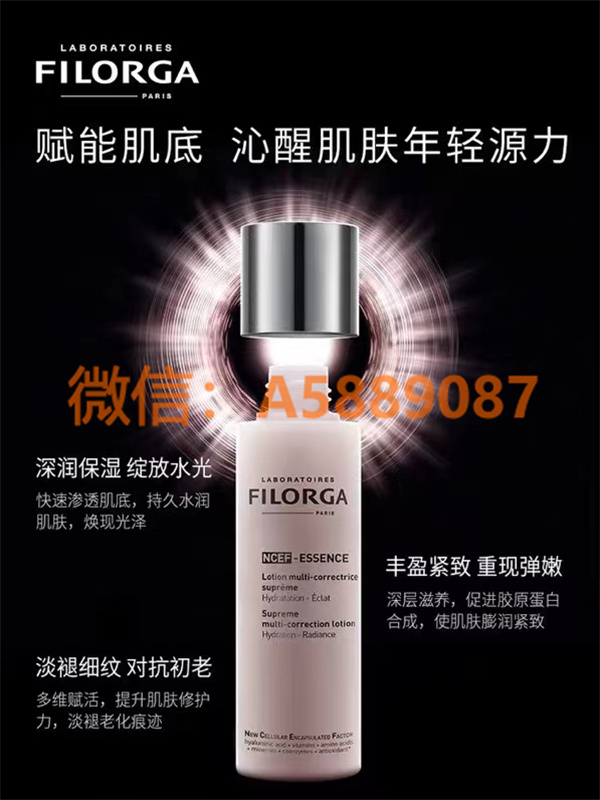 法国菲洛嘉粉水永葆青春的秘籍反馈超级无敌好,缺点就是太难买,菲洛嘉保湿粉水!Filorga 最新系列 NCTF-ESSENCE肌肤再生爽肤水150ml这是菲洛嘉实验室推出的第一款玻尿酸爽肤水噢富含高浓度NCTF 相当于可注射的微整针剂,可深层补水,保湿,亮肤,紧致肌肤,去除皱纹,每天早晚都可用,相当于每天给肌肤充足的玻尿酸,让肌肤永葆青春.